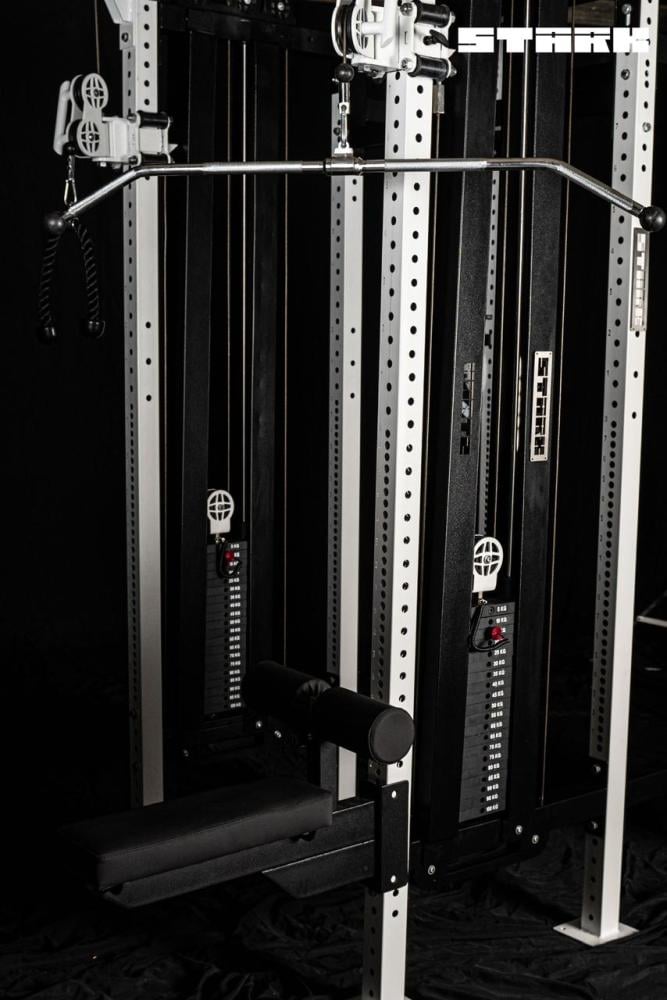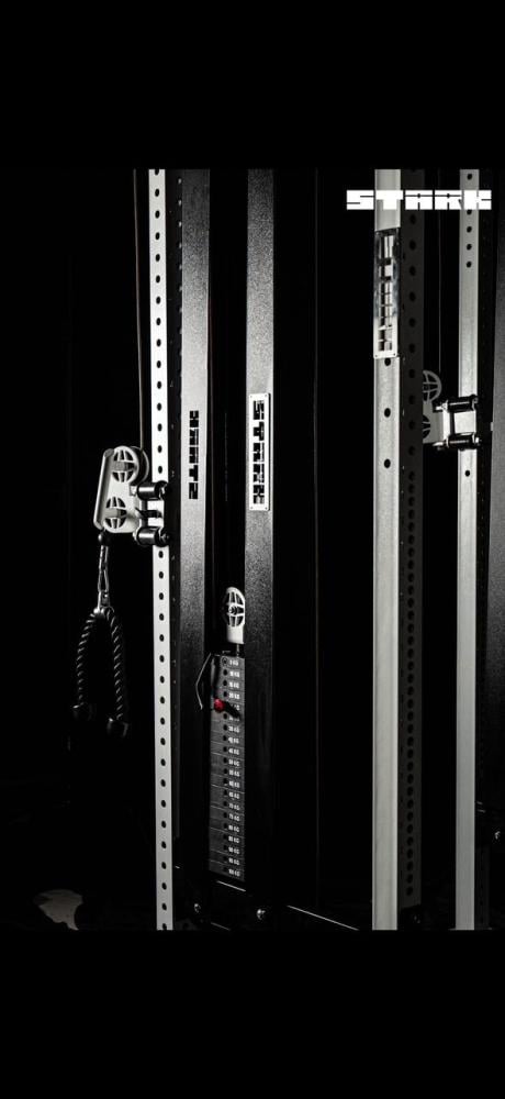 هو جهاز لياقة بدنية متعدد الاستخدامات وقوي مصمم لتوفير تمرين كامل للجسم. يتضمن محطات لـ سحب الظهر العلوي (Lat Pulldowns)، دفع الحبل لعضلة التراي (Triceps Rope Pushdown)، تمارين عضلة البايسبس بالكابل (Biceps Cable Curls)، تمارين الضغط بالكابل على المقعد (Bench Cable Crossover)، رف القرفصاء (Squat Rack)، ومحطة السحب لأعلى (Pull-Up Station)، مما يوفر مجموعة واسعة من التمارين التي تستهدف جميع مجموعات العضلات الرئيسية.