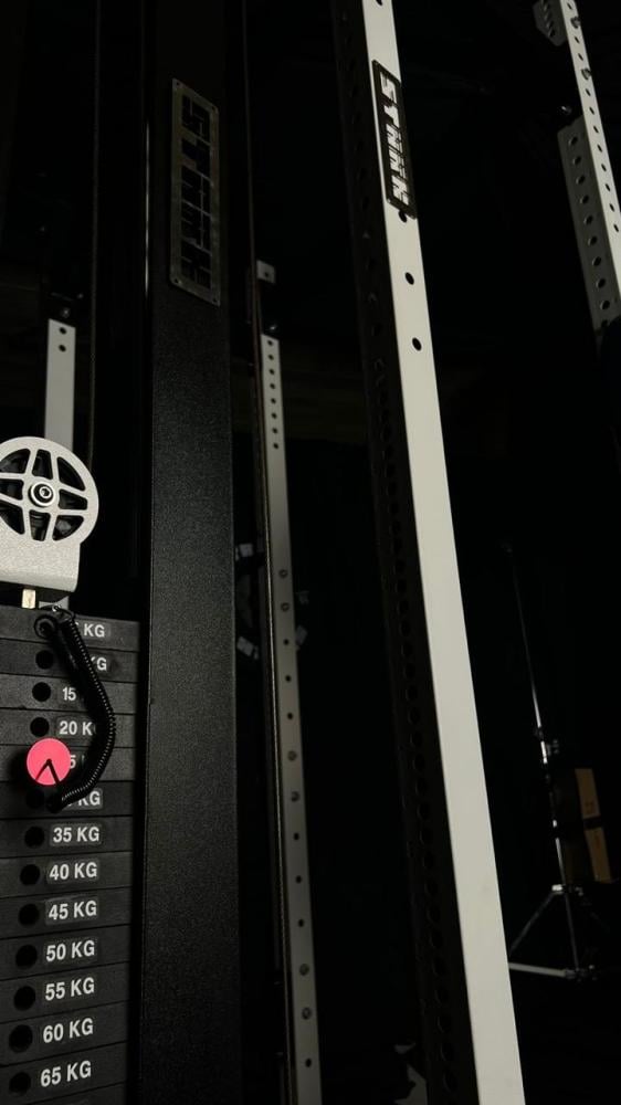 يتميز هذا الرف بـ 100 كجم من الأوزان (لكل جانب) ونسبة بكرة 2:1، مما يضمن مقاومة سلسة وفعالة أثناء التمارين. كما يحتوي على نظام أسطوانة سريعة الإطلاق الذي يسهل ضبط الإعدادات بسرعة وسهولة.